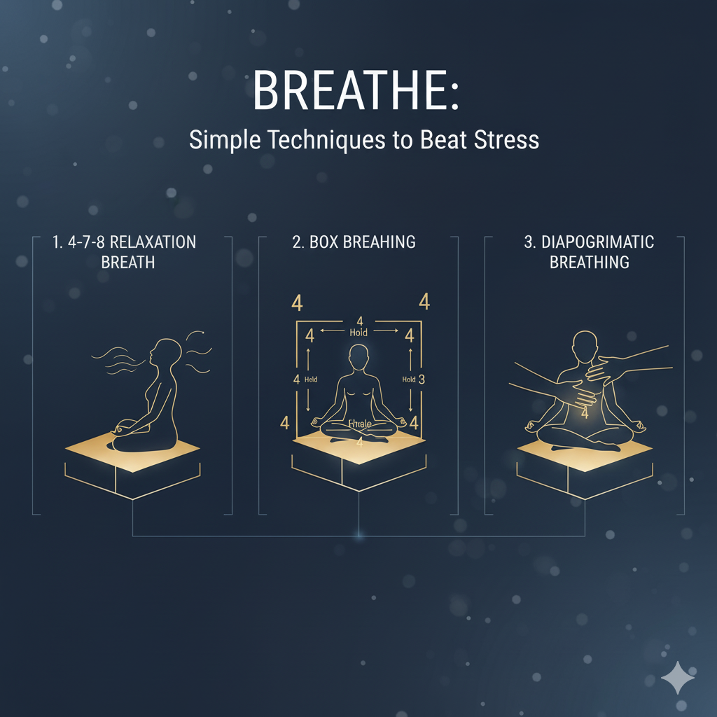 Simple breathing techniques are one of the fastest and most effective ways to lower your heart rate and calm your nervous system, making them excellent tools for beating stress.