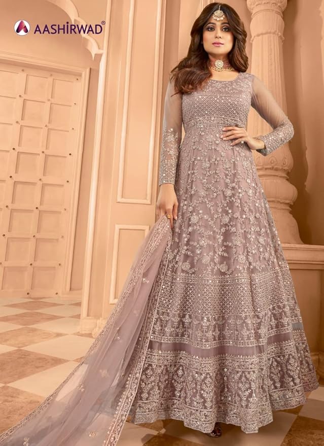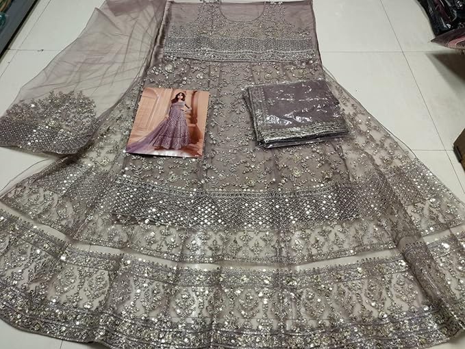 The beautiful and delicate embroidery done on the dress gives a royal look.